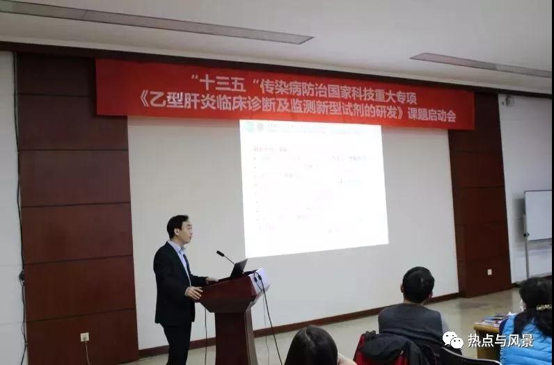 2018年1月13日,由北京熱景生物技術(shù)股份有限公司、北京大學(xué)魯鳳民教授主持的傳染病重大專項(xiàng)“十三五”課題《乙型肝炎臨床診斷及監(jiān)測(cè)新型試劑的研發(fā)》項(xiàng)目啟動(dòng)會(huì)在北京大學(xué)醫(yī)學(xué)部會(huì)議中心成功召開(kāi)。國(guó)家衛(wèi)生計(jì)生委醫(yī)藥衛(wèi)生科技發(fā)展研究中心賀曉慧副主任,科教司重大專項(xiàng)處韓娟娟主任科員,傳染病專項(xiàng)“十三五”總體組專家、中國(guó)醫(yī)學(xué)科學(xué)院/北京協(xié)和醫(yī)學(xué)院科技管理處處長(zhǎng)王健偉教授,北京大學(xué)醫(yī)學(xué)部科研處副處長(zhǎng)樊建軍教授,北京熱景生物技術(shù)股份有限公司林長(zhǎng)青董事長(zhǎng)出席了會(huì)議。來(lái)自北京大學(xué)第一醫(yī)院的王貴強(qiáng)教授、徐小元教授,中國(guó)人民解放軍第三〇二醫(yī)院趙景民教授、徐東平教授,首都醫(yī)科大學(xué)附屬北京佑安醫(yī)院鄭素軍教授,廈門大學(xué)公共衛(wèi)生學(xué)院葛勝祥教授等項(xiàng)目組成員60余人參加了會(huì)議。