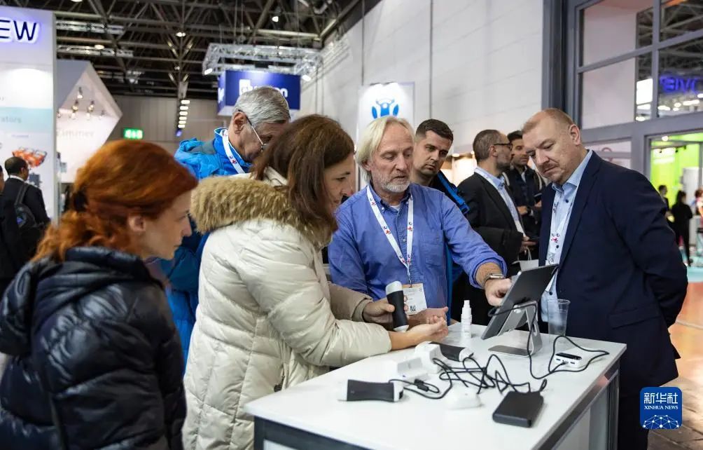 11月13日,在德國杜塞爾多夫國際醫(yī)療器械設備展,參觀者在麥科田醫(yī)療展位體驗設備操作。新華社記者 張帆 攝