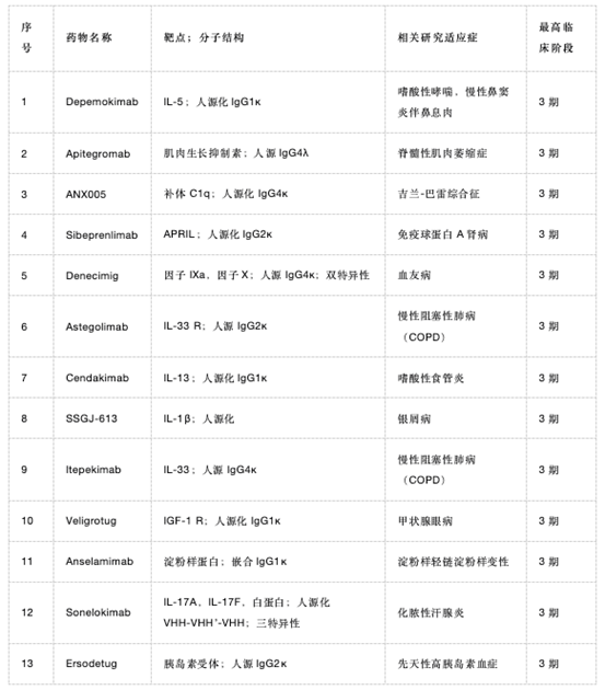 本篇我們將介紹18款有望在2025年提交上市申請的單抗藥物,其種5款則專門針對癌癥適應(yīng)癥,13款針對非癌癥適應(yīng)癥。