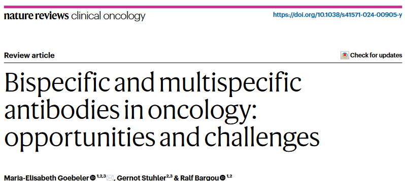 文章轉(zhuǎn)自:BioMed科技,點(diǎn)擊訪問(wèn)微信鏈接:IF:78.8!Nature系列綜述: 面向腫瘤的雙特異性和多特異性抗體—機(jī)遇與挑戰(zhàn)
