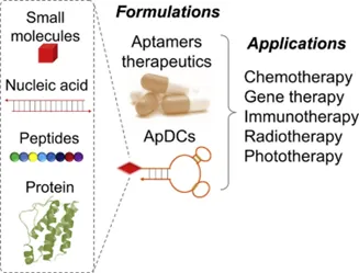Aptamer是一段經(jīng)體外篩選得到的,折疊成特殊三維結(jié)構(gòu)的短單鏈寡核苷酸,能特異性結(jié)合較大范圍的目標(biāo),包括蛋白質(zhì)、小分子、金屬離子、病毒、細(xì)菌和全細(xì)胞,其高特異性和結(jié)合親和力可達到抗體水平。相比抗體藥物,核酸適配體具有體積小、較低免疫原性、無細(xì)胞化學(xué)合成以及較強組織穿透力、易修飾成本低等優(yōu)點,在疾病診斷、治療和預(yù)防中有著廣泛的藥物應(yīng)用潛力。但其三維構(gòu)象受pH影響較大,親和性高度依賴于溶液性質(zhì)。第一款 Aptamer 藥物Pegaptanib于2004 年獲FDA批準(zhǔn)。它是一種具有29個核苷酸的RNA適配體,5’端的聚乙二醇部分可延長其在人體內(nèi)的停留時間。Pegaptanib 通過空間結(jié)構(gòu)與血管內(nèi)皮生長因子(VEGF)結(jié)合,抑制血管生成達到治療效果,因此被開發(fā)用于治療濕性年齡相關(guān)性黃斑變性。