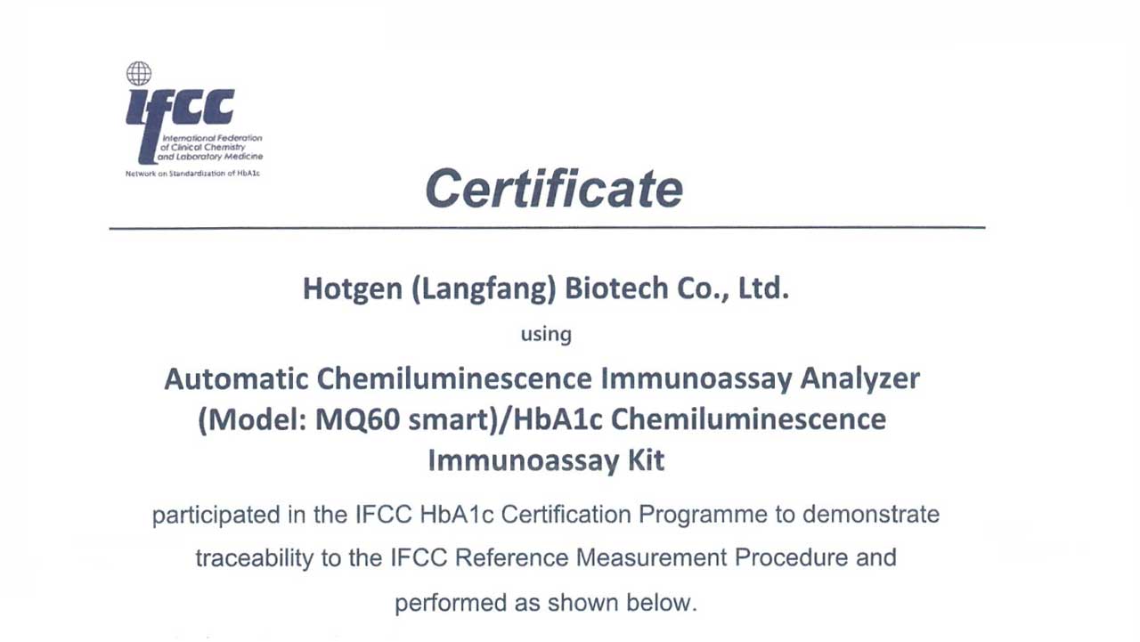品質(zhì)為先!熱景生物糖化血紅蛋白(HbA1c)產(chǎn)品獲IFCC認(rèn)證